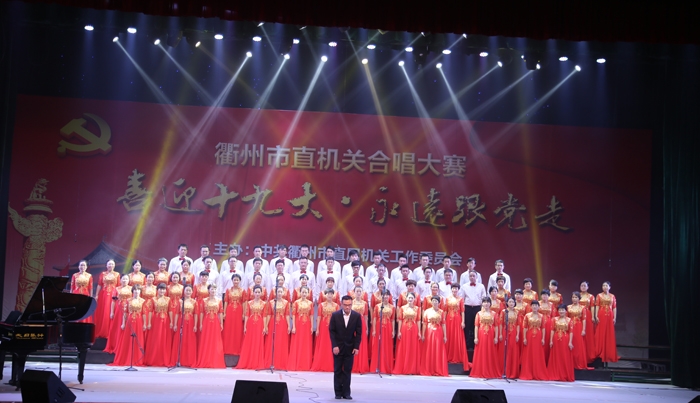 ??? 9月9日,由衢州市直機關工委主辦的“喜迎十九大·永遠跟黨走”衢州市直機關合唱大賽在衢州學院禮堂舉行。