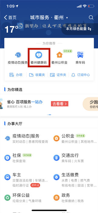 方法二:打開“支付寶”APP首頁,點擊:城市服務→衢州健康碼。