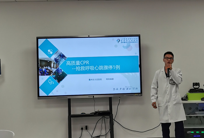 我院急診科醫師歐陽??底黝}為《高質量CPR搶救呼吸心跳驟?;颊摺返陌咐窒?。