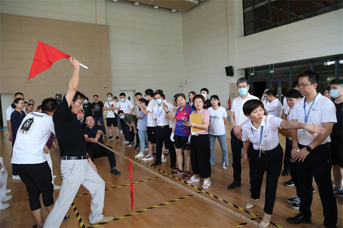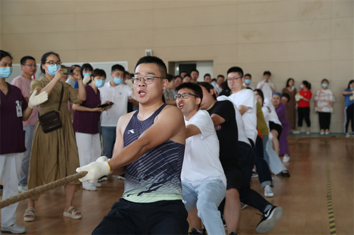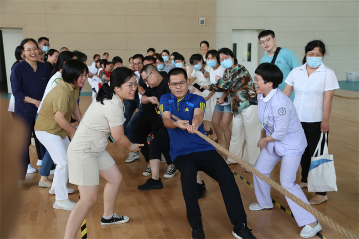 “加油加油”在一陣陣響徹云霄的吶喊聲、助威聲中,“喜迎二十大,奮進新征程”紀念黨的101周年拔河比賽拉開了序幕,醫院23個黨支部代表隊齊上陣,展開了一場力量的比拼。