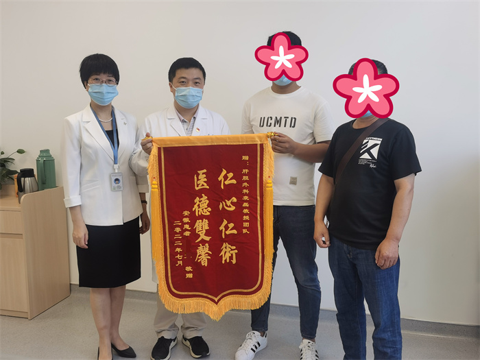 日前,我院肝膽外科袁磊博士團隊成功為靳女士實施高難度的肝中葉切除,經門靜脈右前支取癌栓術,靳女士和家屬不勝感激。