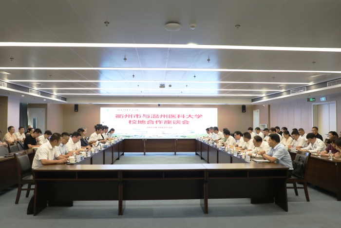 10月15日下午,衢州市與溫州醫科大學校地合作座談會,在我院舉行。中國工程院院士、溫州醫科大學校長李校堃一行出席。市政府副秘書長毛曉榮出席并主持會議。